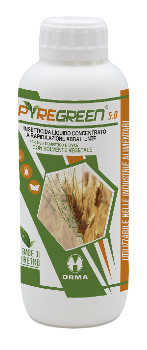 PyreGreen 5.0 è un insetticida efficace contro insetti volanti (zanzare, mosche, tignole, ecc.) e insetti striscianti (blatte, pidocchi, pulci, tarme della farina, punteruolo del grano, ecc.) che comunemente infestano le aziende alimentari, le abitazioni domestiche, gli ambienti industriali, zootecnici e rurali.